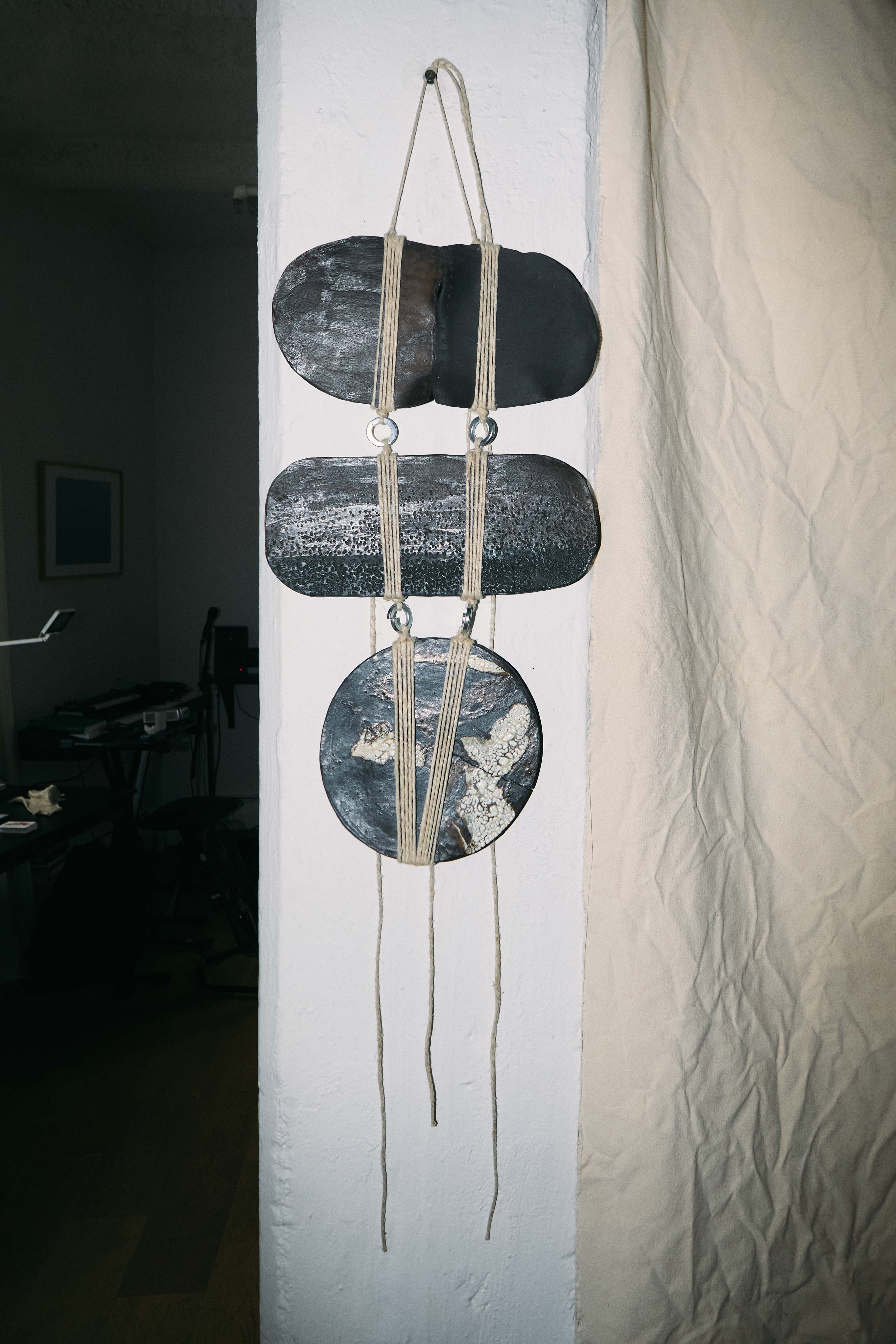 Glazed stoneware, Jute rope, Metal